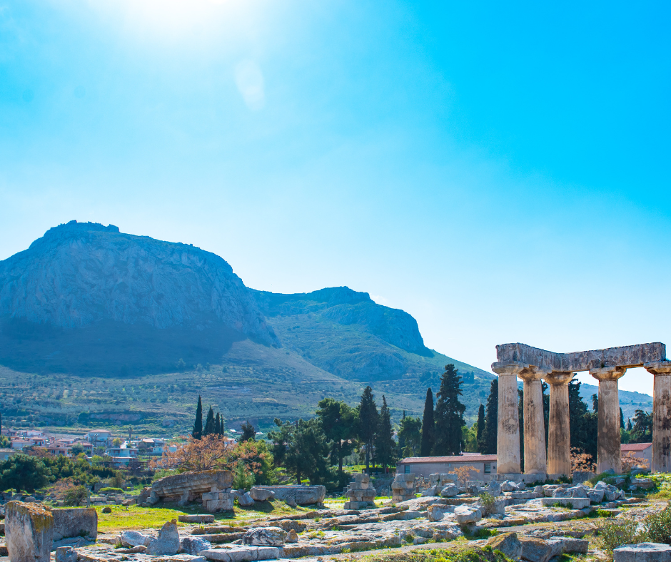 Ant aukštos uolos virš Korinto lygumos dar gyvas mitas: dievai čia dalijosi žemes – Akrokorintas atiteko Afroditės globai, o sąsmauka su keliais į jūras –...